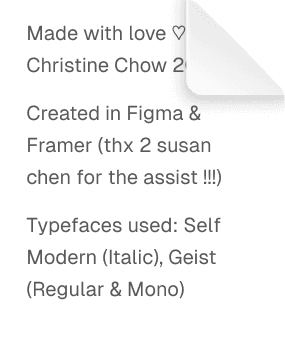 When I'm not in design mode, I enjoy reading memoirs & science fiction, making nail art, practicing Muay Thai, looking for work-friendly cafes, and learning Korean to one day impress my uncles in Incheon 𖦹 。ꕤ.゚