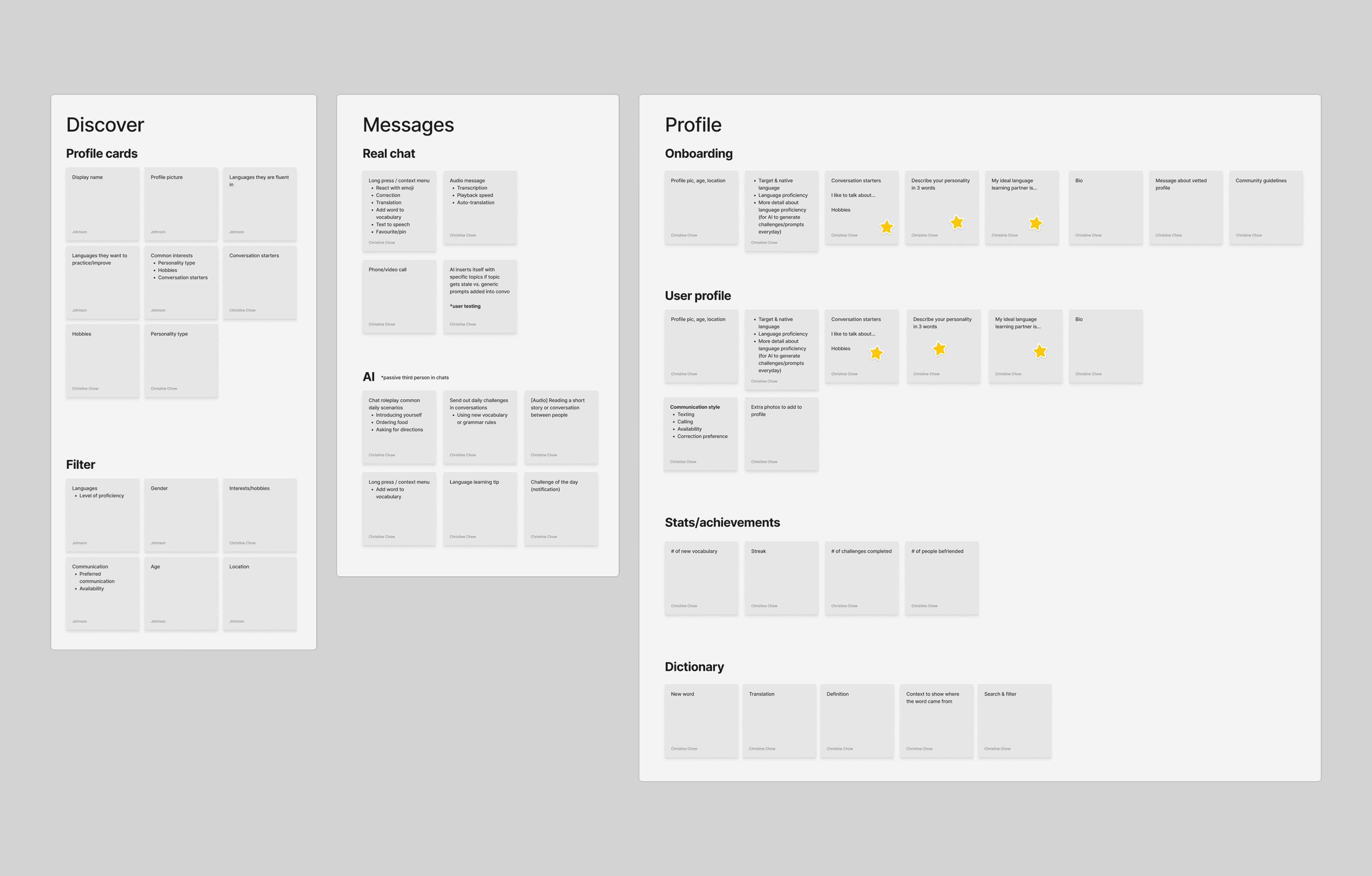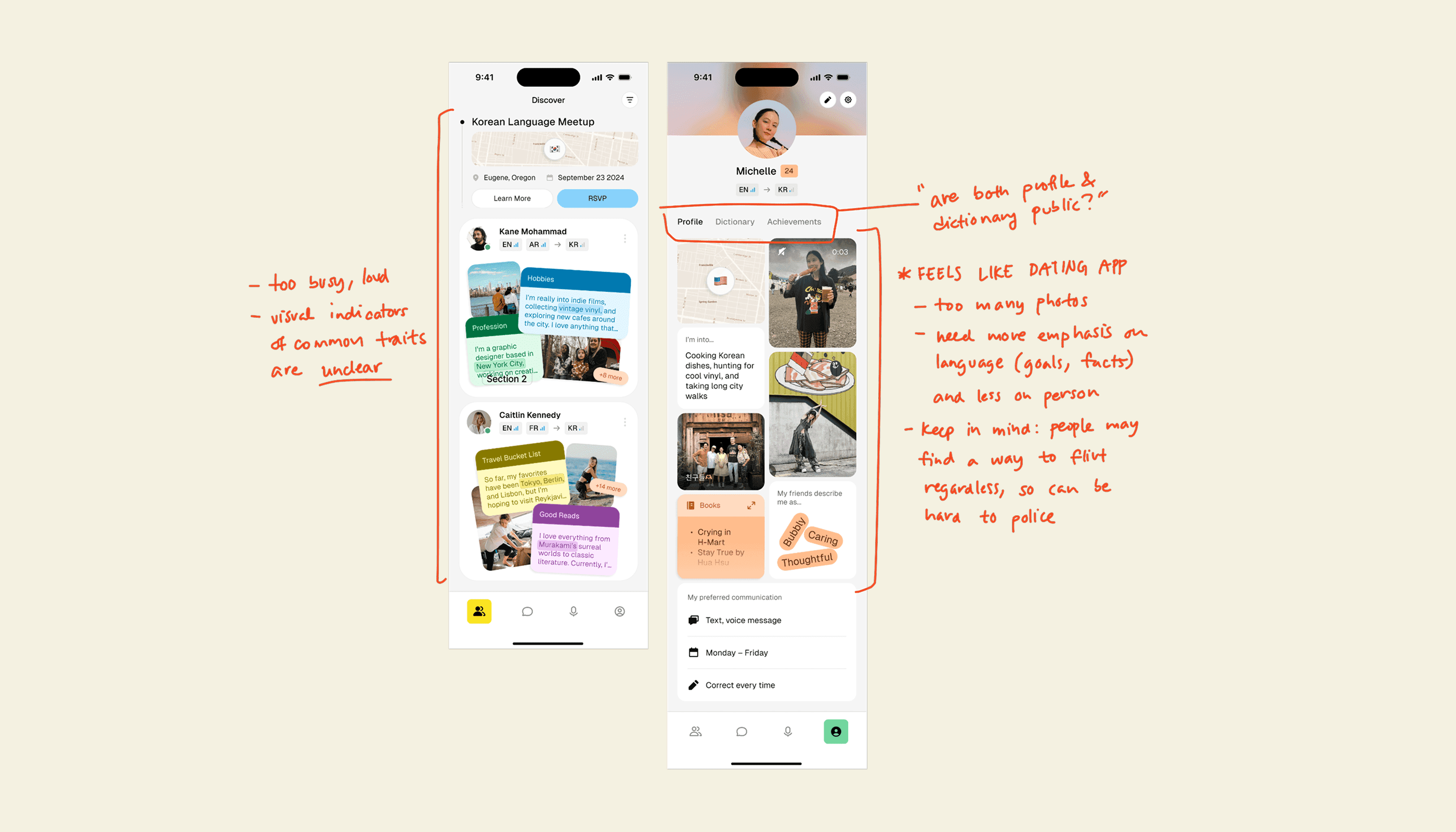 One piece of feedback I was looking for in particular was around AI application. Our participants reacted positively to our ideas of robust profile matching and a personal chatbot; while these features help start conversations, we were missing something to continue them.