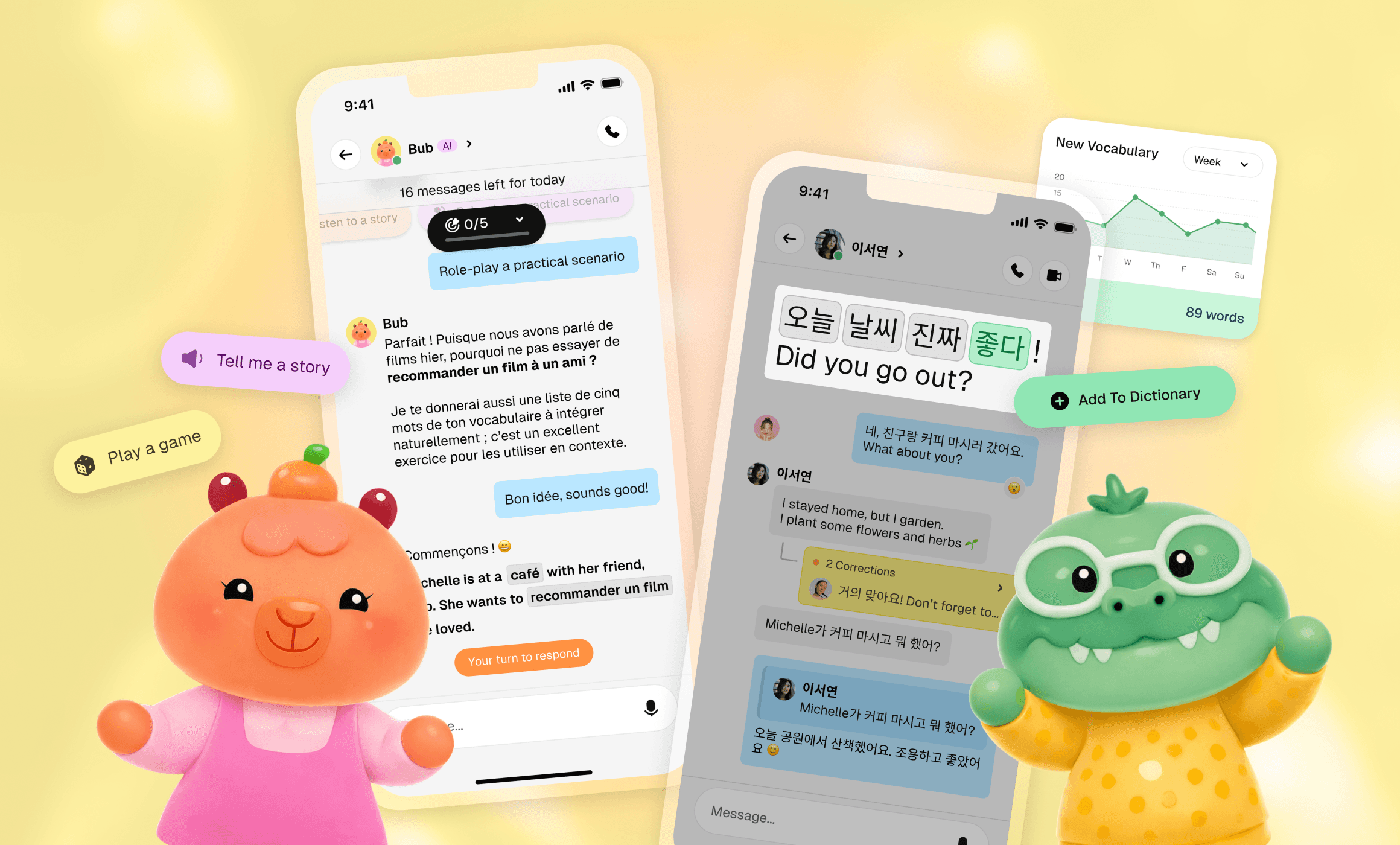 Our AI-powered best friends, Bub and Lee, offer personalized practice that meets learners exactly where they are in their journey.