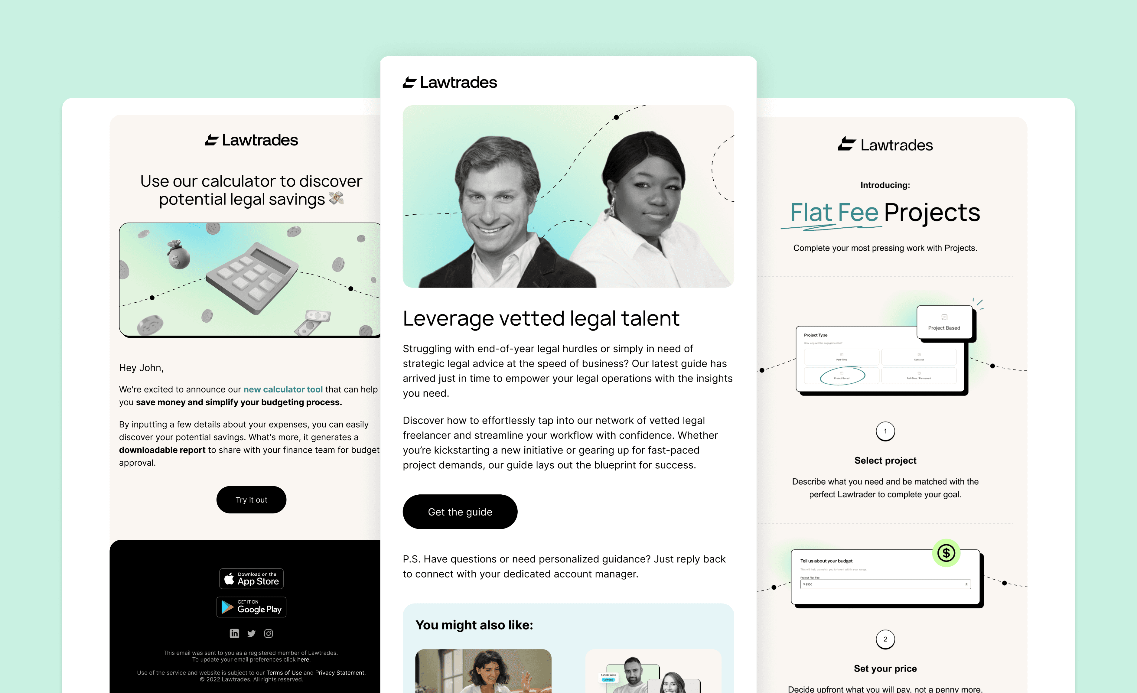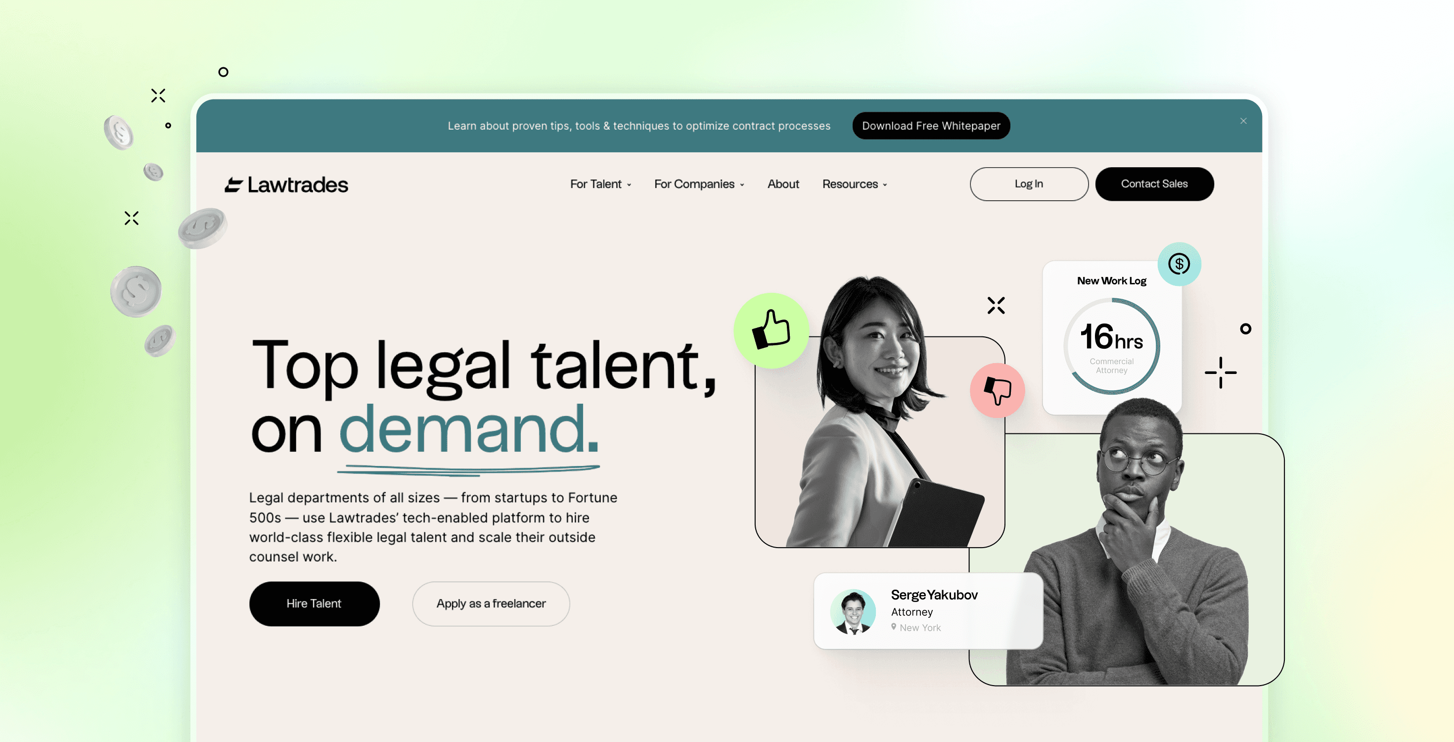Lawtrades is a freelance marketplace that connects 100+ mid-market and enterprise clients with top-notch legal talent. As the main digital & UI designer, I led the design efforts across all website and marketing channels, and later refreshed the UI of the web app to align with the new brand identity.