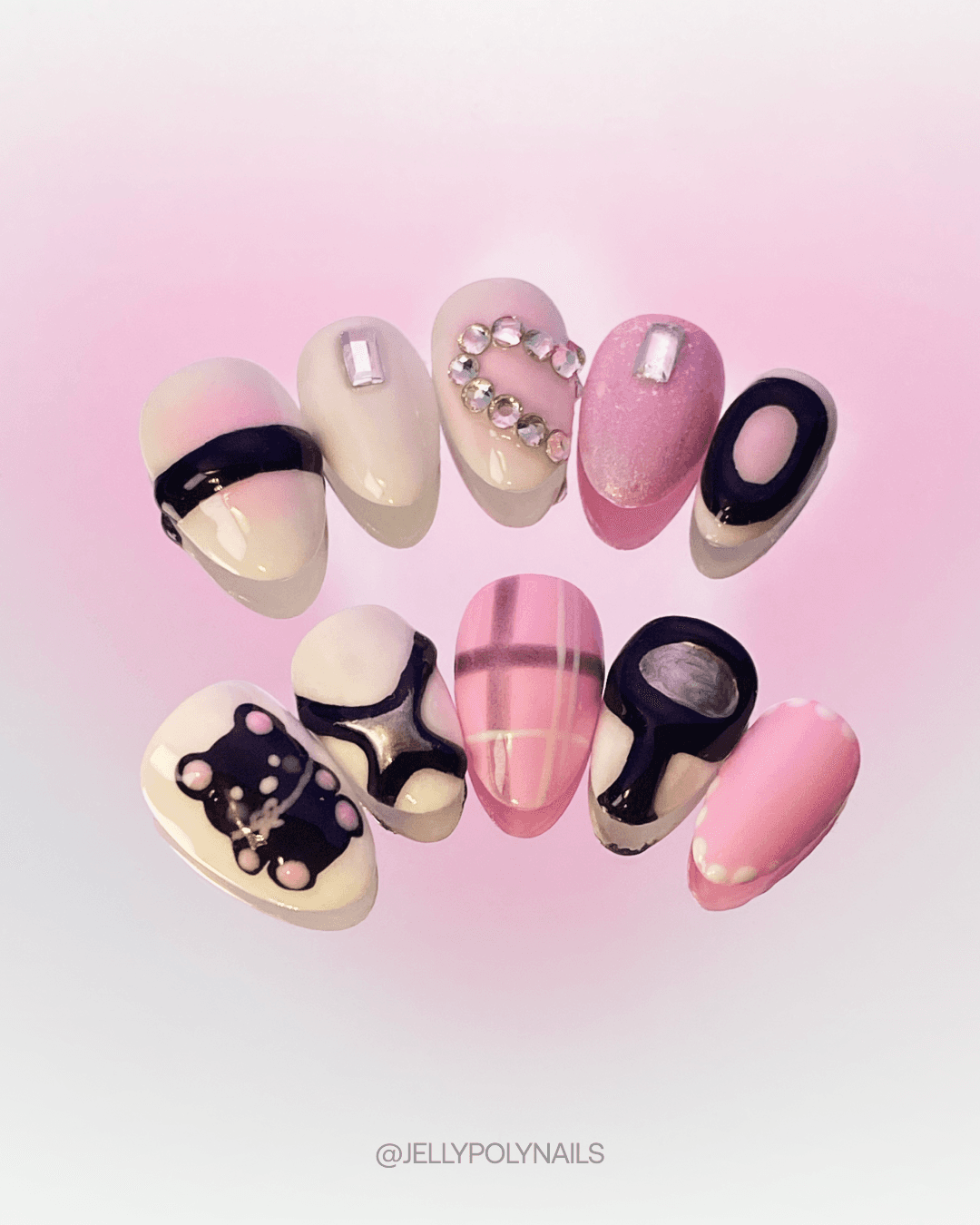 In 2023, I started a new hobby making nail art and other cute accessories under the name JellyPolyStudio. Since then, I have been a vendor at the Recess Art Market, opened an Etsy Shop, and continue to post updates and make reels on my Instagram!