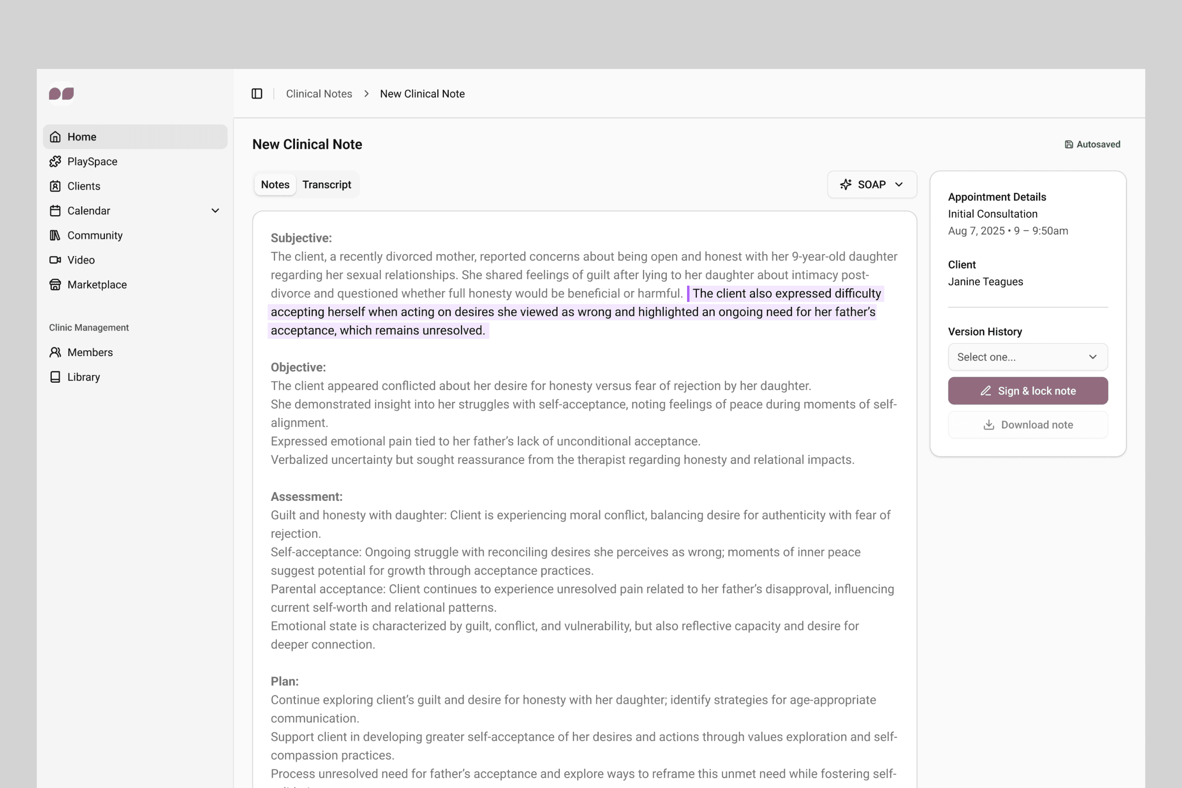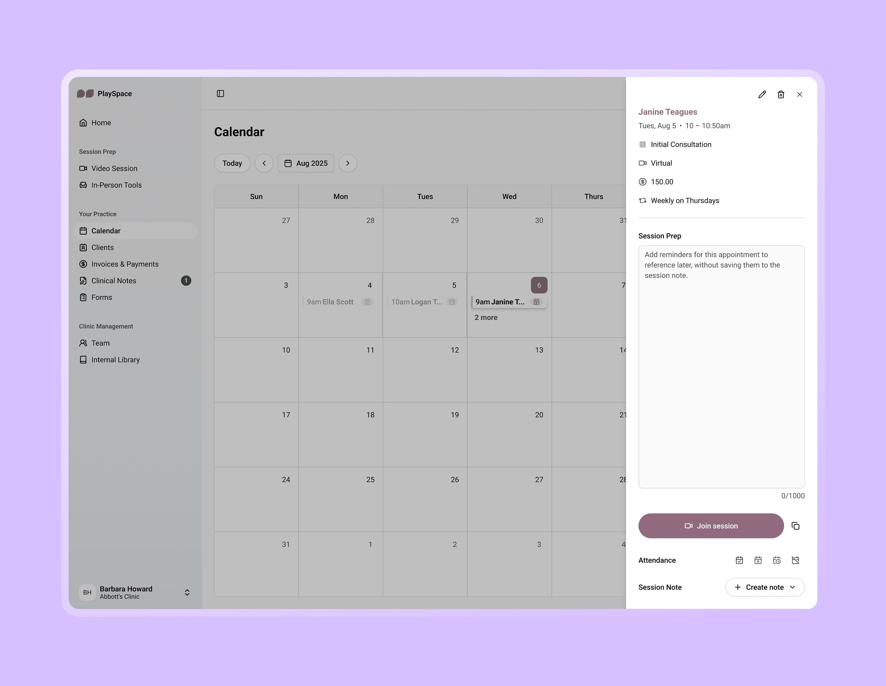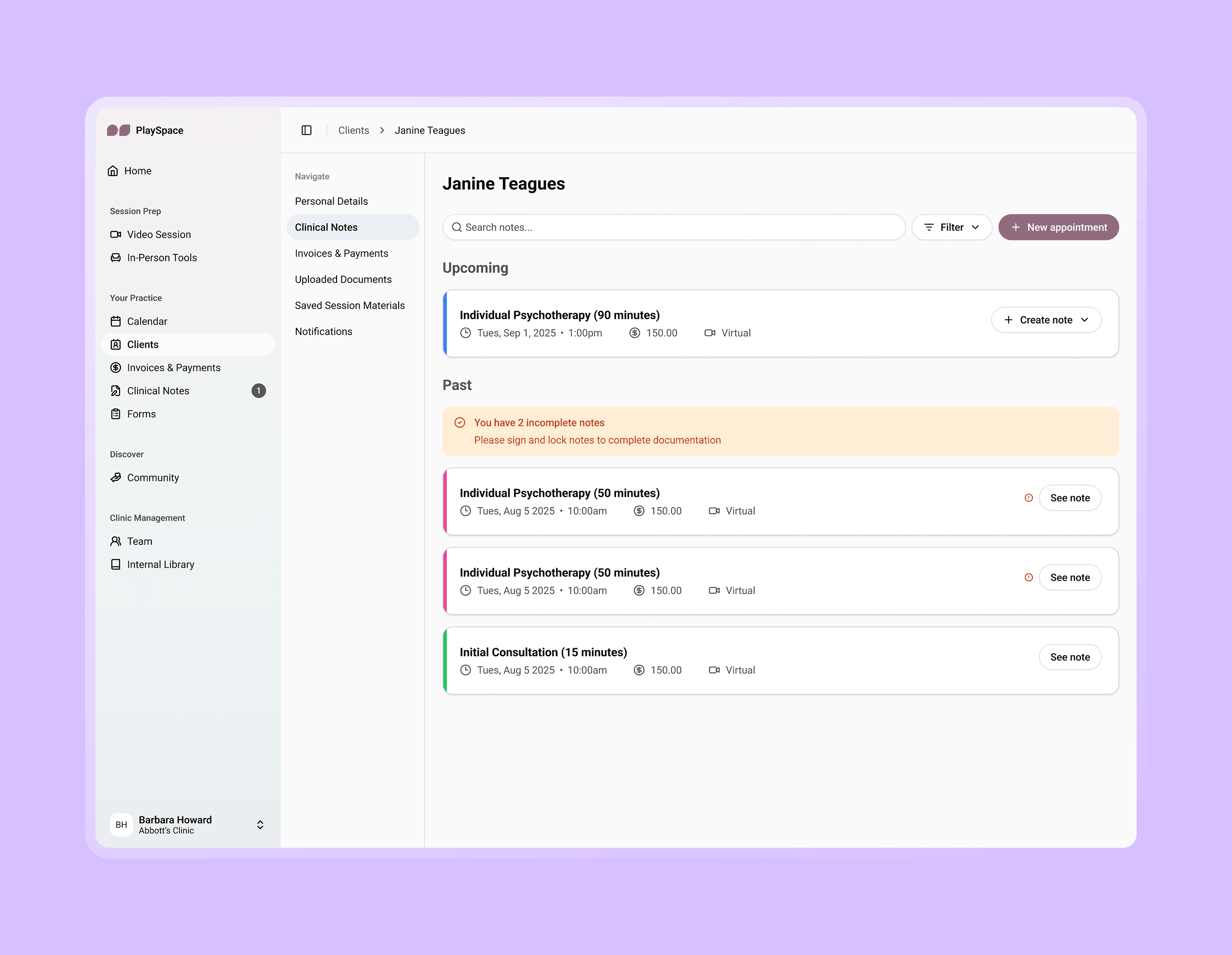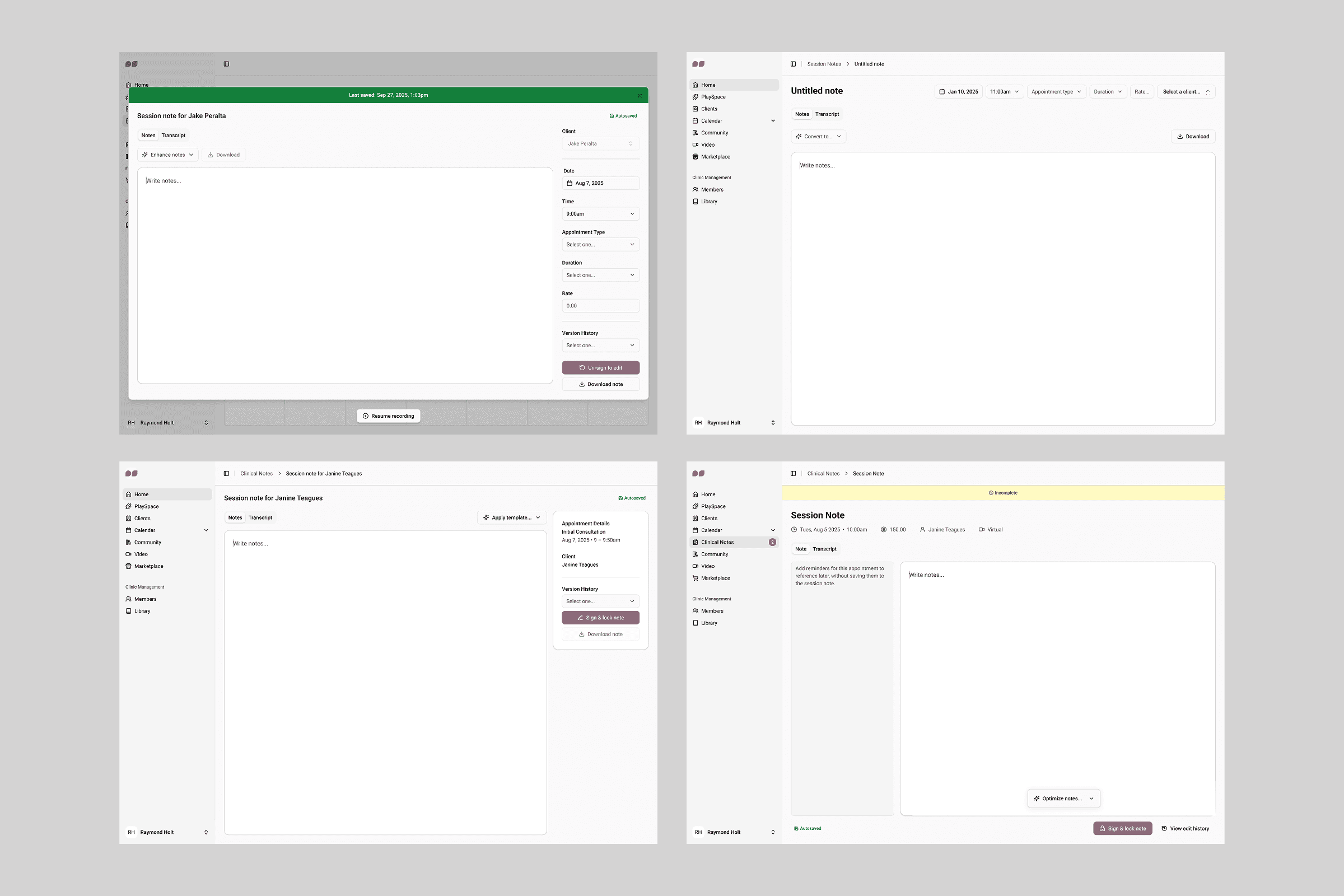 We had to clearly distinguish between the types of notes (Session Prep, Quick Notes, Official Session Note) to prevent confusion.